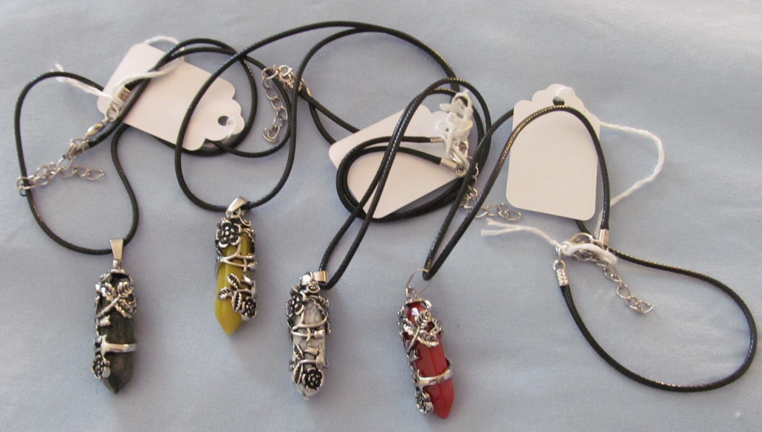 Various styles of Necklaces, bracelets and earrings.